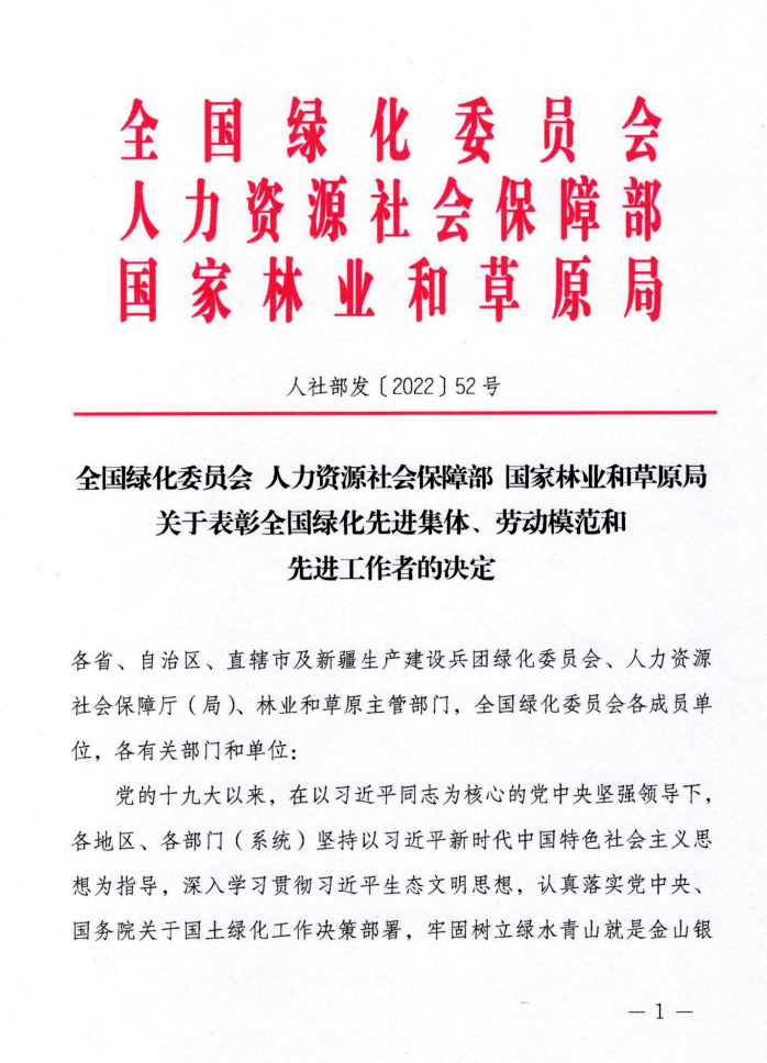 近日,我院作为受表彰先进集体收到全国绿化委员会、人力资源社会保障部、国家林业和草原局《关于表彰全国绿化先进集体、劳动模范和先进工作者的决定》红头文件。我院是该奖项2001年启动以来,辽宁省首个获此殊荣的高校集体。
