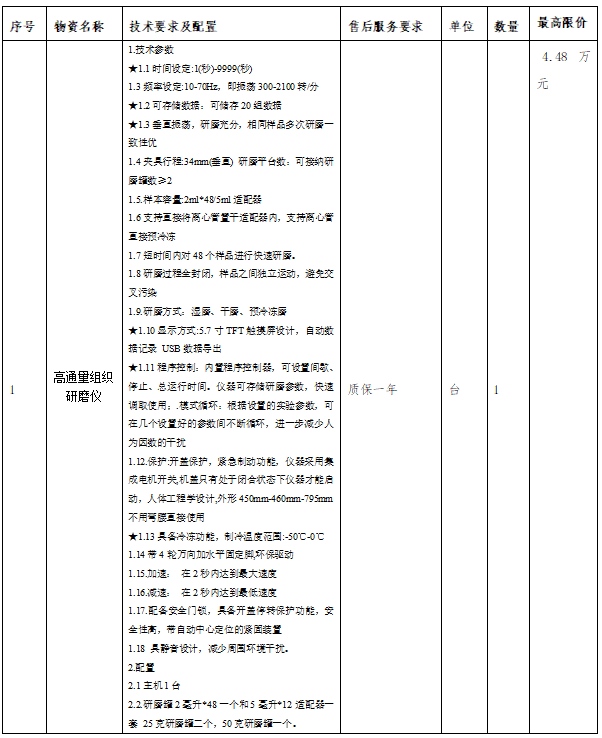 一、项目名称:开云官方网页版高通量组织研磨仪项目询价采购